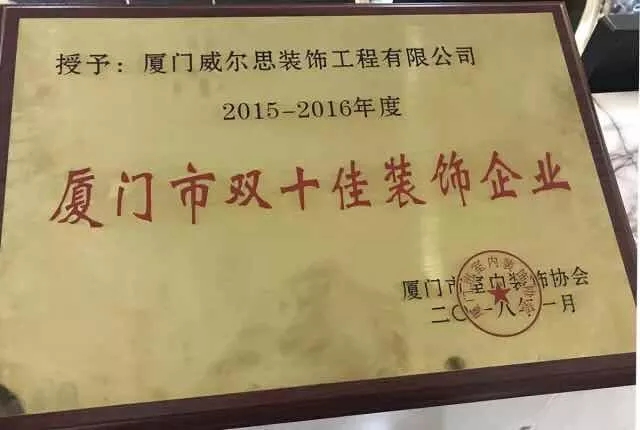 2017年榮獲“廈門雙十佳裝飾企業(yè)”頭銜;